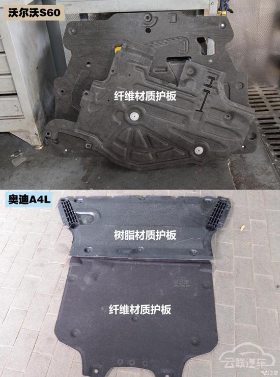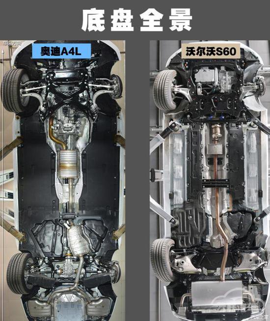 作为两款指导价30万元以上的中型轿车,s60和a4l的车底防护和平整度都表现不错。底盘护板的材质也与低级别车型上的普通塑料材质不同,加入了纤维材质的护板,这对车底的噪音控制更加有好处。
