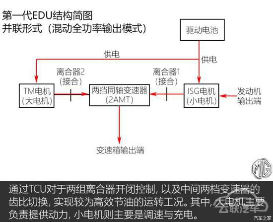 欲了解第一代上汽插电式混合动力技术,我们曾在很早之前写过相关文章,感兴趣的朋友可以点击以下链接:第一代edu技术解析。当然,如果您觉得看长文太累了,接下来我就尽可能地给你先讲明白第一代edu的原理与特点。