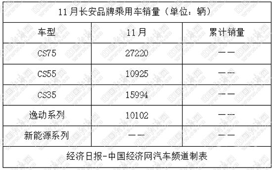 分车型来看,长安乘用车品牌旗下的CS75、CS55、CS35、逸动系列,在11月的销量分别为27220辆、10925辆、15994辆、10102辆。而新能源系列产品的销量,长安汽车(000625.SZ)本月依然没有公布。