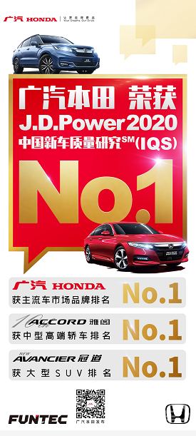 广汽本田的热销逻辑在哪?除了日益普及的亲民技术圈粉,还在于内核的高品质、高可靠性。这早已从市场口碑和行业认可中得到体现。在2020年10月15日J.D.Power发布的《2020中国新车质量研究SM(IQS)》调查报告中,广汽本田在众多品牌中脱颖而出,获得主流车市场No.1,其中第十代雅阁(ACCORD)更是蝉联中型高端轿车No.1,新款冠道(AVANCIER)也荣膺大型SUV细分市场的No.1。此外,广汽本田多款车型,如飞度(FIT)、奥德赛(ODYSSEY)、缤智(VEZEL)、冠道(AVANCIER)等也常年稳居各类保值率调查细分市场榜单前列,以超高保值率佐证产品品质实力。