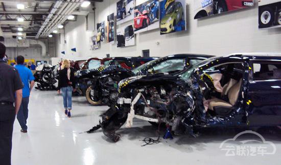 在以上众多安全测试机构中,尤以美国IIHS碰撞测试最为严格。IIHS是指美国公路安全保险协会,其最严谨的碰撞项目为25%小重叠正面碰撞测试,车辆以64km/h撞到模拟障碍物,通过确认车辆的受损变形程度将车辆分为4个安全等级:G(优秀)、A(良好)、M(及格)、P(差)。由于25%小重叠碰撞对车辆A柱强度要求非常高,所以一般能保证A柱不变形的车辆,说明车身强度已经达到了非常高的水平。